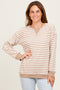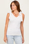 Mocha/Off White Striped Ribbed V-Neck Shoulder Tie Sleeveless Top