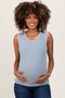 Mocha Ribbed Contrast Embroidered Sleeveless Maternity Top