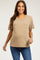 A solid hued maternity top featuring short sleeves and a rounded neckline.