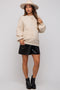A color blocked sweater featuring a turtleneck and long sleeves.