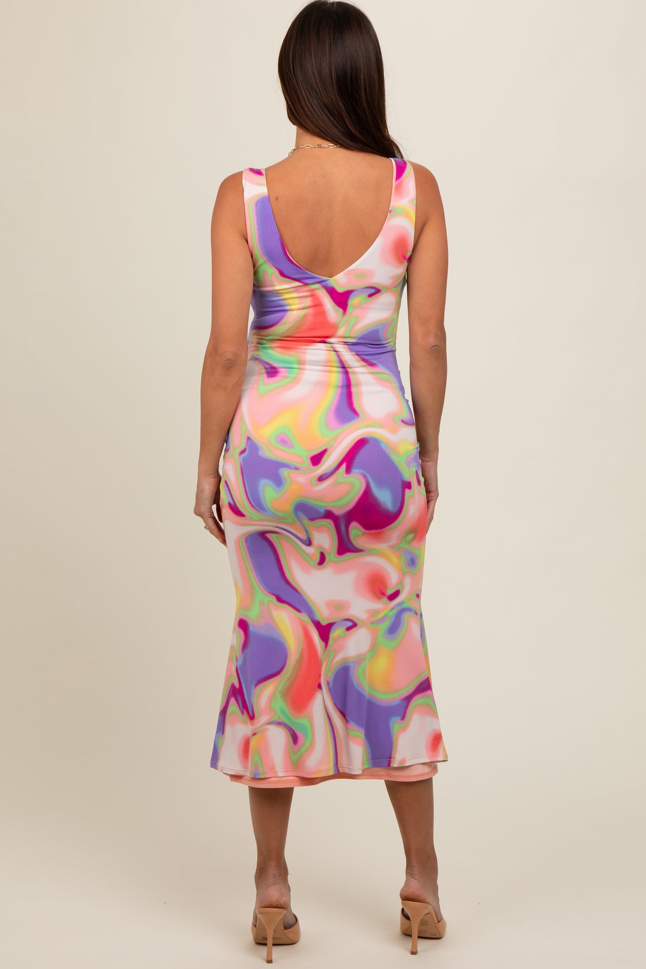 Multi-Color V-Neck Sleeveless Maternity Midi Dress