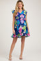 A printed romper with puff sleeves, square neckline with keyhole and tie detail and smocking in back. Romper is partially lined. Pocketed.