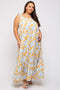 Navy Blue Multi-Color Floral Sleeveless Tiered Plus Midi Dress