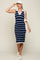 Navy Blue Striped Sleeveless Collared Midi Dress