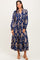 Navy Damask Front Tie Smocked Waist Midi Dress