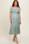 Navy Floral Smocked Ruffle Hem Dress