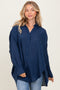 Navy Lightweight Sheer Button Down Maternity Blouse