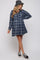 Navy Plaid Button Front Long Sleeve Maternity Dress