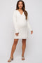 A plaid maternity dress featuring a button front, long sleeves, front pockets, side pockets and a collared neckline.