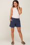 Navy Washed Cuffed Pocketed Shorts