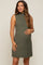 A solid sleeveless cable knit maternity mini sweater dress with a mock neck.