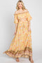 A floral maternity maxi featuring a straight neckline, adjustable straps, a tiered skirt, and a back zipper closure. Dress is partially lined.