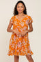 Orange Floral Flutter Sleeve Maternity Babydoll Dress