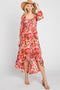Orange Floral Smocked Puff Sleeve Maternity Dress