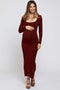A basic set with cropped pants featuring an elastic smocked waistband. A short sleeve tee with a v-neckline.
