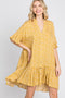 A floral chiffon print maternity midi dress featuring a smocked elastic top, adjustable straps, a ruffle hem and double lined.