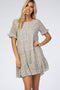 A floral fitted maternity dress featuring a ruffle off shoulder neckline and ruched sides.