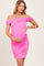 Pink Off Shoulder Ruched Maternity Mini Dress