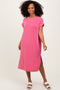 Pink Pointelle Contrast Trim Sweater Midi Dress