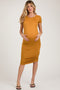 A knit midi dress featuring a rounded neckline and double side slits.