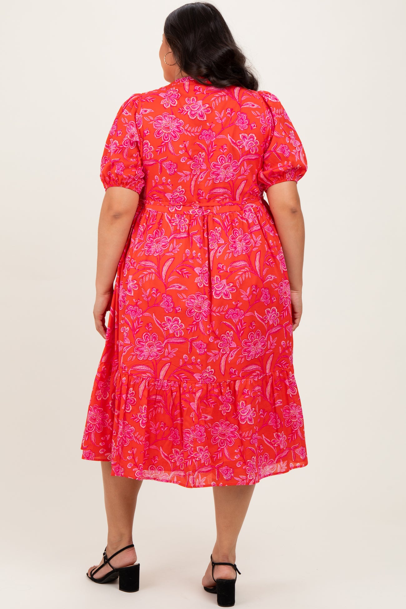 Step into vibrant style with our Red Floral Button Down Plus Midi Shirt Dress! This flattering midi dress features a cheerful red base adorned with bold pink floral prints, perfect for making a statement. The button-down front and puff sleeves add a charming touch, while the self-tie waist cinches in to highlight your curves beautifully. Crafted from soft, breathable fabric, this dress promises all-day comfort and easy movement. Pair it with heels for a polished look or sandals for casual days. A must-have addition to your plus-size wardrobe for effortless, feminine chic!
