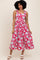 Red Floral Square Neck Sleeveless Midi Dress