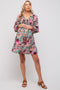 Rose Bud Multi Floral Tie Neck Smocked Sleeve Top
