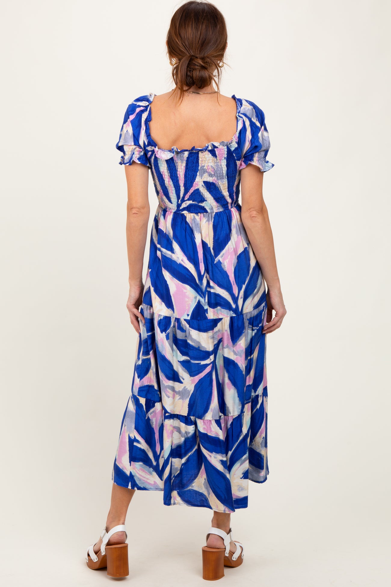 Royal Blue Blue Smocked Top Woven Tiered Dress