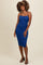 Royal Blue Rhinstone Sleeveless Ruched Mesh Midi Dress