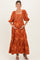 Rust Floral Print Smocked Bodice Maternity Maxi Dress