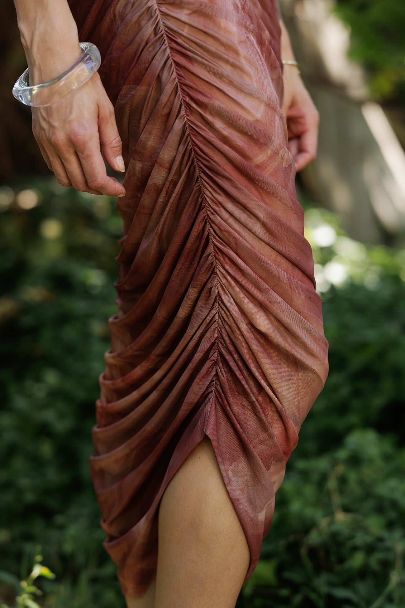 Rust Floral Ruched Rosette One-Shoulder Midi Dress