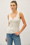 Rust Ribbed Split Neck Tank Top