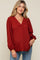 Details A solid textured maternity blouse featuring long sleeves and a v-neckline. Content + Care