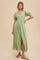 A floral print maxi dress featuring a button down front, a front slit, short puff sleeves and a v-neckline.