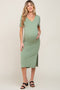 Sage V-Neck Short Sleeve Side Slit Midi Dress