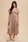 Taupe Deep V-Neck Puff Short Sleeve Asymmetrical Hem Midi Dress