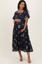 Taupe Floral Embroidered Puff Sleeve Maternity Midi Dress