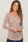 A floral print long sleeve top featuring a v-neckline with button decor and rounded hemline.