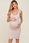 Taupe Leaf Print Chiffon One Shoulder A-Line Waist Tie Maternity Maxi Dress