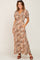Taupe Leaf Print Cinched Accent Maxi Dress