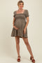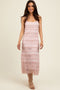 Taupe Mixed Cable Knit Colorblock Shoulder Tie Midi Dress