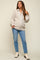 An oversized maternity cardigan featuring a zip up front and long puff sleeves.