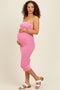 Taupe Ribbed Knit Embroidered Maternity Midi Dress