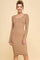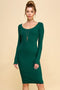 A rib knit dress with a scoop neckline and long sleeves. Body is lined