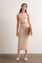A knit maternity set featuring a sleeveless crop top and a fitted knit midi skirt.