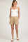 A solid pair of maternity short with a smocked elastic waistband, lining and side pockets.