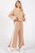 A striped set featuring long sleeves and long pants with a self-tie drawstring.