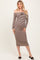 Taupe Striped Off Shoulder Rosette Maternity Midi Dress