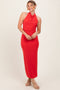 Taupe Striped Off Shoulder Rosette Midi Dress