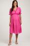 A striped knit maternity top featuring a rounded neckline and short sleeves.